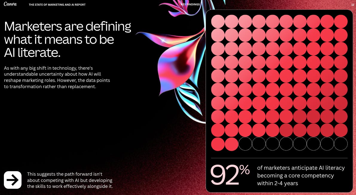 Canva and Morning Consult just conducted a global AI adoption survey, and it’s clear how important AI literacy is becoming across every role in marketing:
