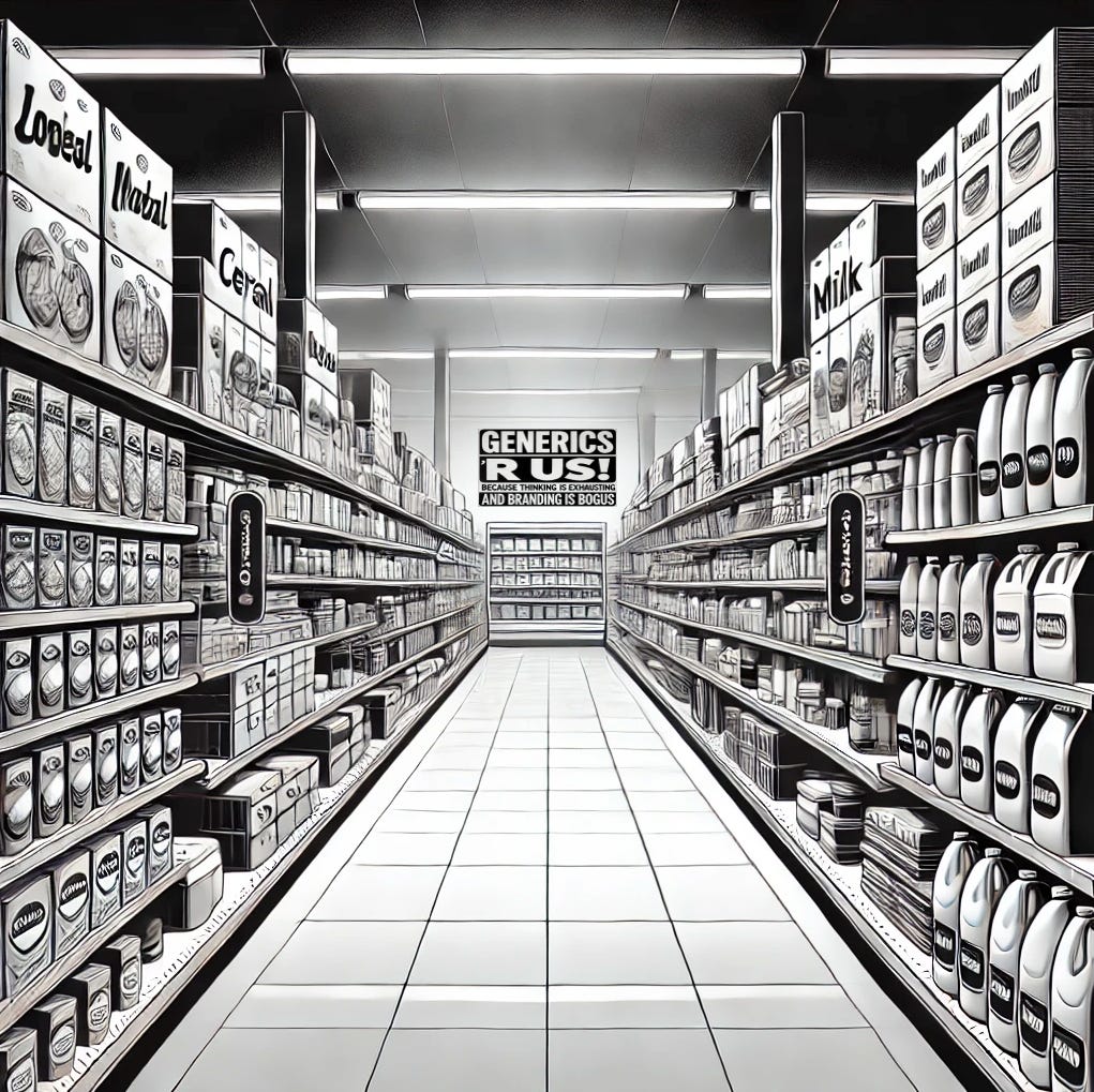 ”Generics ‘R Us! Because Thinking Is Exhausting, and Branding Is Bogus!”